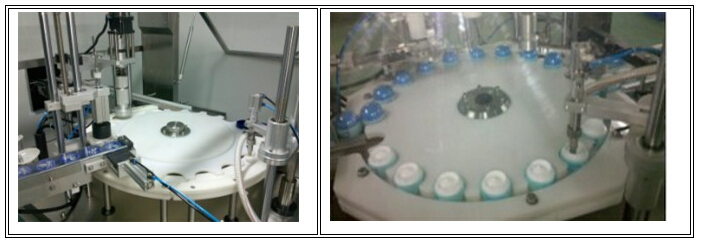 本機主要用于日化的灌裝作業(yè)。本機將灌裝、理蓋、下蓋、旋蓋三功能合在一個機體上,全過程實現(xiàn)自動化,適用于化妝品、膏霜類產(chǎn)品、水劑等的灌裝、加熱溫控裝置還可以進行熱灌裝。各部分的試用瓶型調(diào)整采用手柄轉(zhuǎn)動實現(xiàn),輕松自如,簡便快捷。灌裝方式采用了新型的微壓灌裝,使灌裝速度更快更穩(wěn)定,所以與同規(guī)格的機器相比本機的產(chǎn)量更高,效益更大。本機采用了先進的可編程控制器控制機器的自動運行,光電檢測各部件的運行狀況,所以自動化程度高,操作簡便。在此基礎(chǔ)上,本機變更灌裝設(shè)備,可以形成低真空灌裝方式。